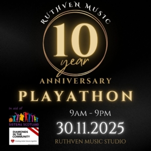 We are holding a 12 hour non-stop charity Playathon event on Sunday the 30th of November, to celebrate 10 years of Ruthven Music